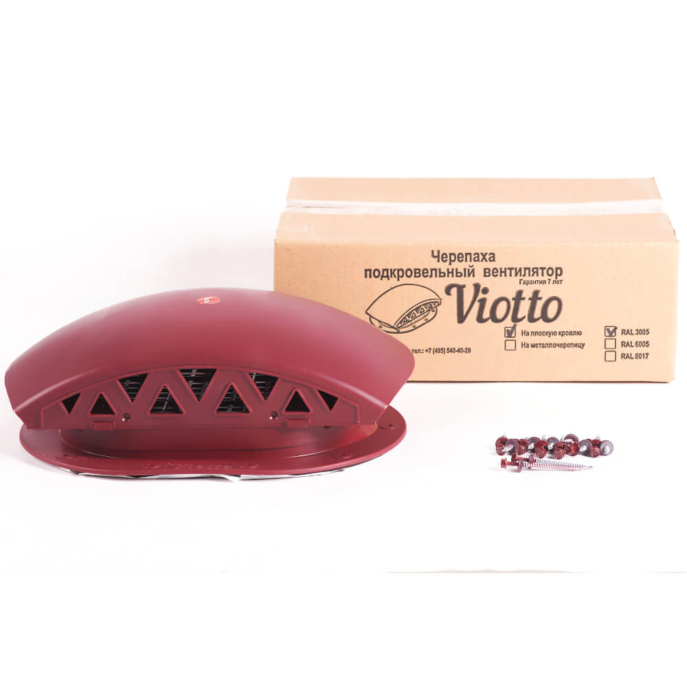 Подкровельный вентилятор "Черепаха" Viotto RAL 3005 Красное Вино для готовой мягкой и фальцевой кровли в Липецке