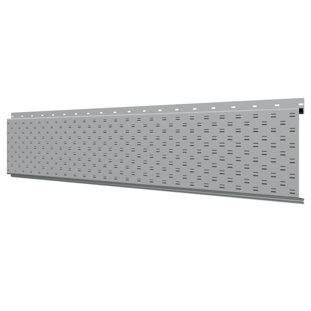 Линеарная потолочно-стеновая панель с ПЕРФОРАЦИЕЙ для вентиляции цвет RAL7004 Серый применяется в качестве софитов для подшивы крыши, наружной и внутренней отделки потолков, стен, фронтонов фасада дома в Липецке.