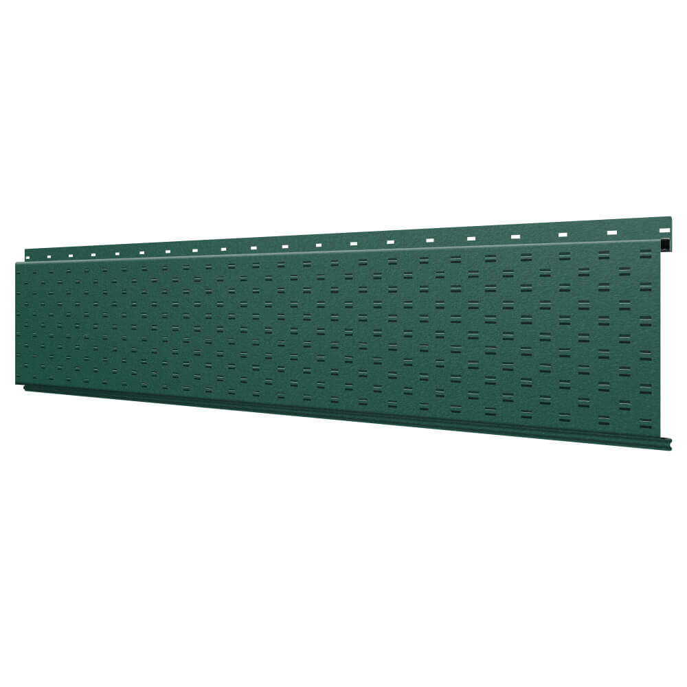 Линеарная потолочно-стеновая панель с ПЕРФОРАЦИЕЙ для вентиляции цвет RAL6005 Зеленый Мох Стальной Бархат применяется в качестве софитов для подшивы крыши, наружной и внутренней отделки потолков, стен, фронтонов фасада дома в Липецке.