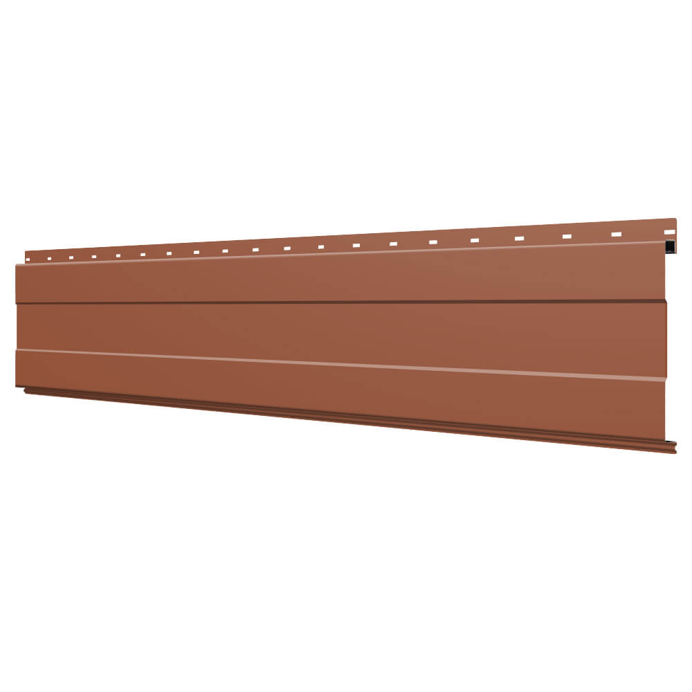 Линеарная потолочно-стеновая панель с ПОЛОСОЙ усиленная цвет RAL8004 Терракотовый применяется в качестве софитов для подшивы крыши, наружной и внутренней отделки потолков, стен, фронтонов фасада дома в Липецке.