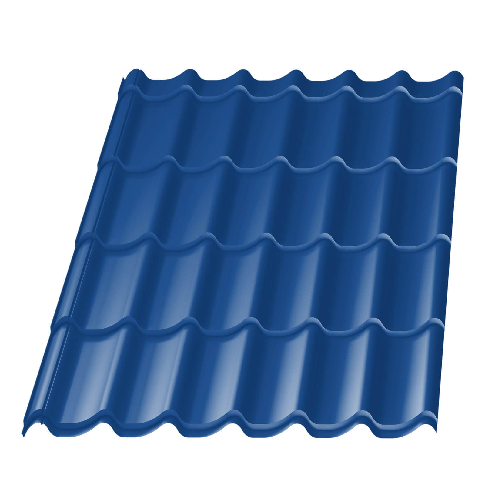 Металлическая черепица Меркурий цвет RAL 5002 Синий Сигнал имеет профиль внешне на кровле напоминающий классическую керамическую черепицу. Меркурий — это обновленный аналог профиля металлической черепицы для кровли крыши. Форма профиля имеет богатый внешний вид напоминающий небольшие набегающие волны. Лучшие показатели герметизации сделали профиль Меркурий гарантом стабильной и долговременной службы на крышах в Липецке. Данный профиль отличается не только своим качеством и практичностью, но и благородным внешним видом.