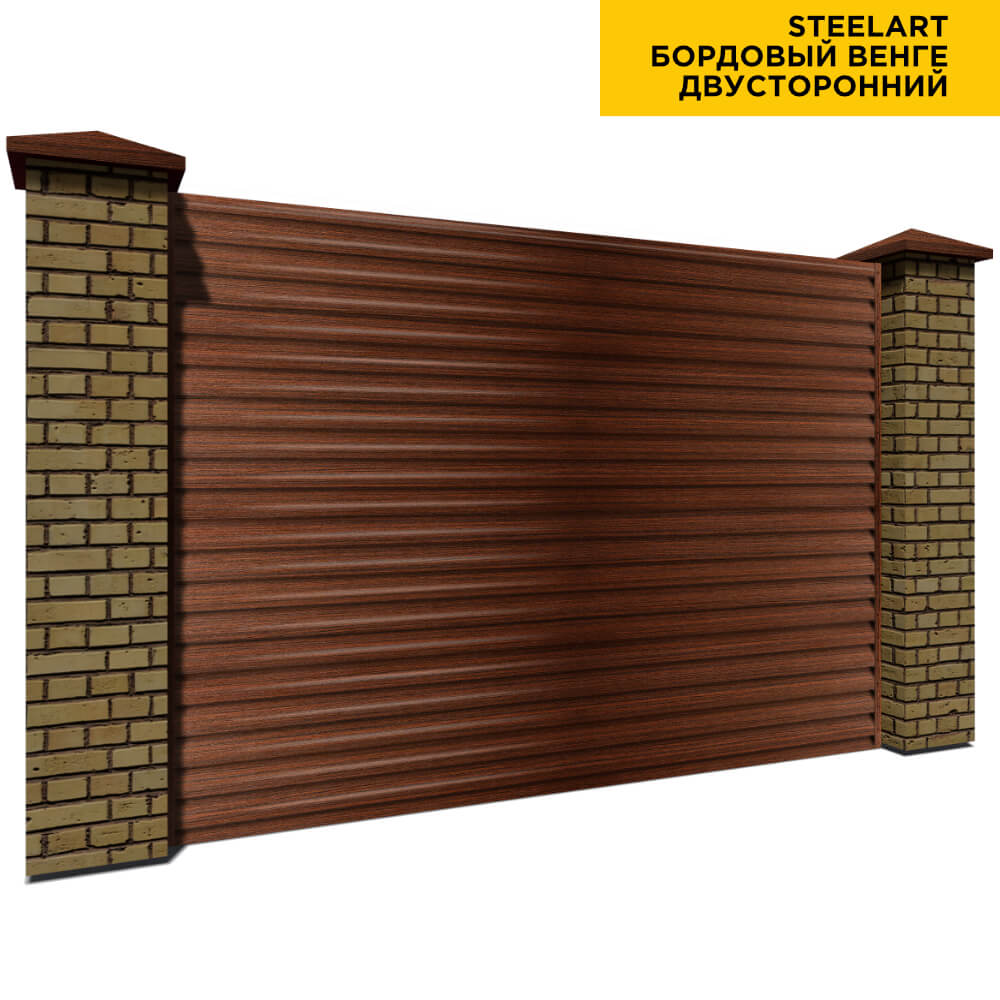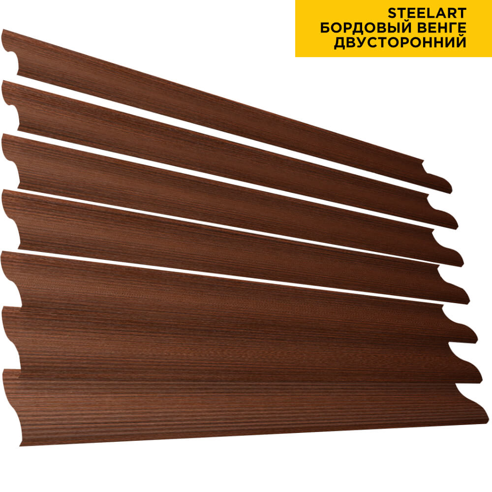 Ламель Еврожалюзи металлическая S-образная, цвет под дерево Бордовый Венге SteelArt Россия двухстороннее покрытие, длина любая кратно 1см под заказ - для забора-жалюзи, беседки, перголы в Липецке.