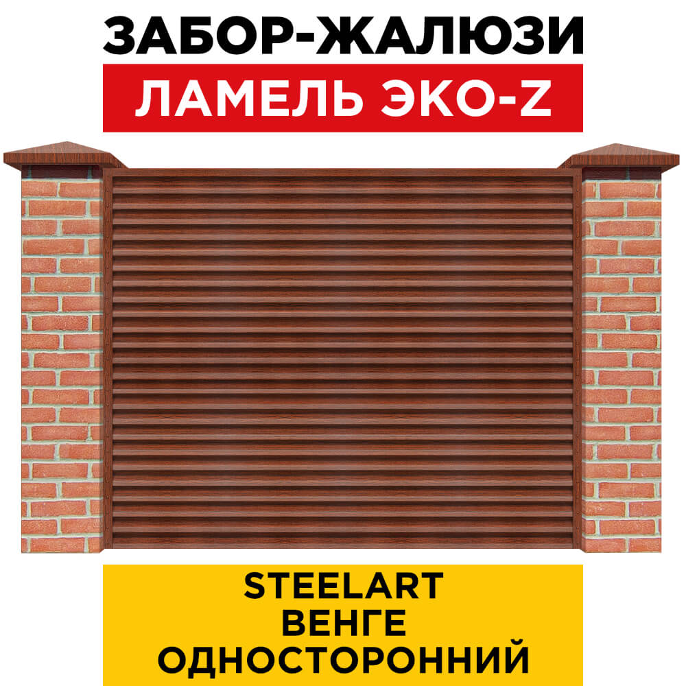 Ламель металлическая Z-образная простая ЭКО-Z, цвет под дерево Венге SteelArt одностороннее покрытие, длина любая кратно 1см под заказ - для забора-жалюзи, беседки, перголы в Липецке